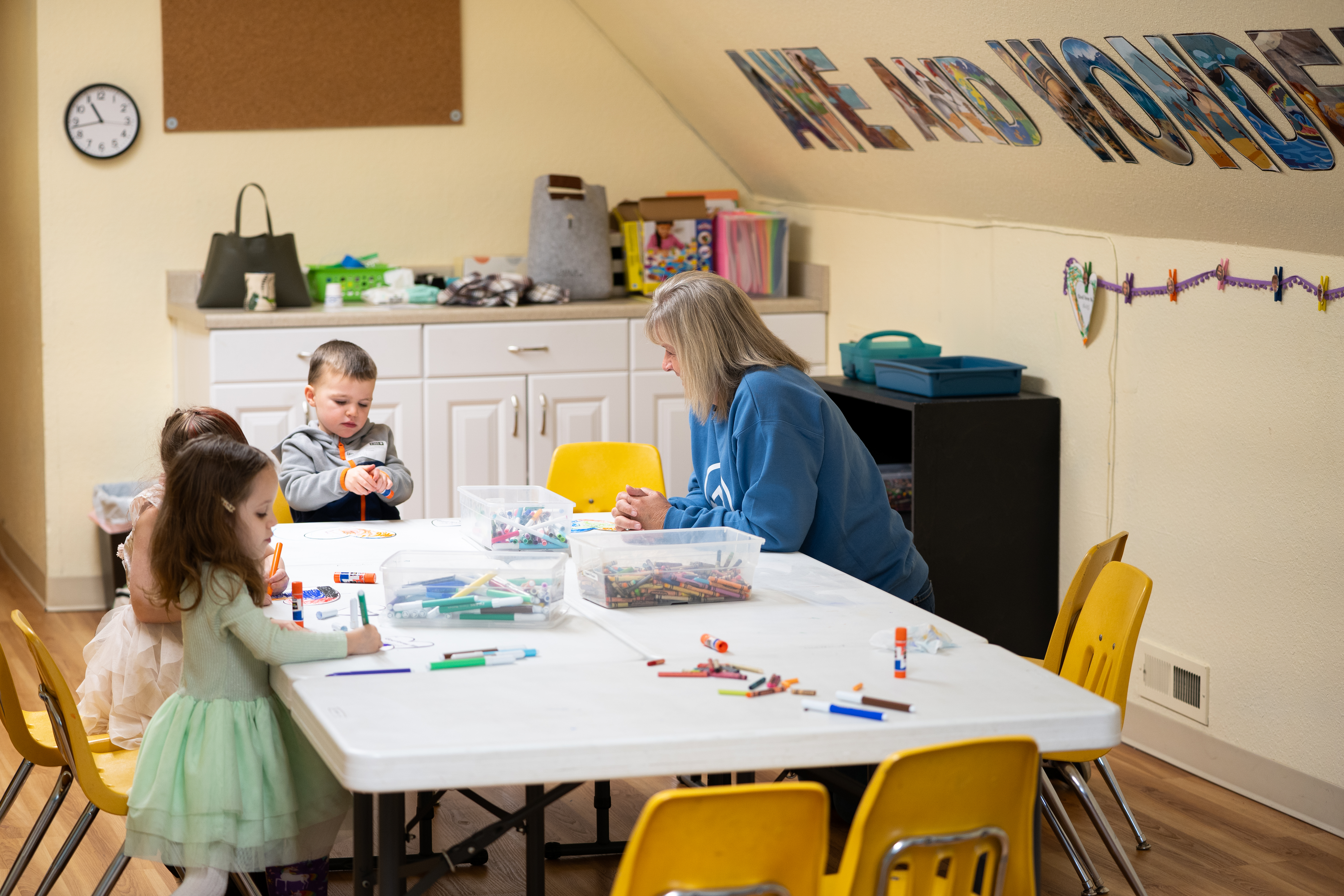 Even at the youngest ages, we believe in partnering with parents to introduce their children to Jesus. Childcare is provided for children ages 0–3 during our Sunday worship service.